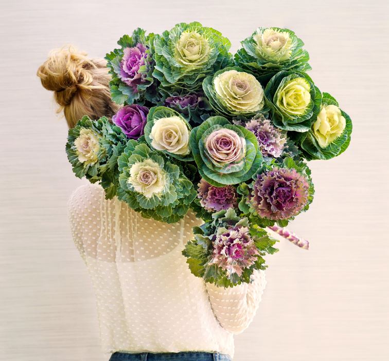 Brassica is literally Latin for 'cabbage'. It is therefore an ornamental cabbage, but I am sure you had already seen that. It is not actually a flower, but a plant grown on long stems. It was not so long ago that it was discovered that brassica looks beautiful in a bunch of flowers! A vegetable in a bouquet, why not?