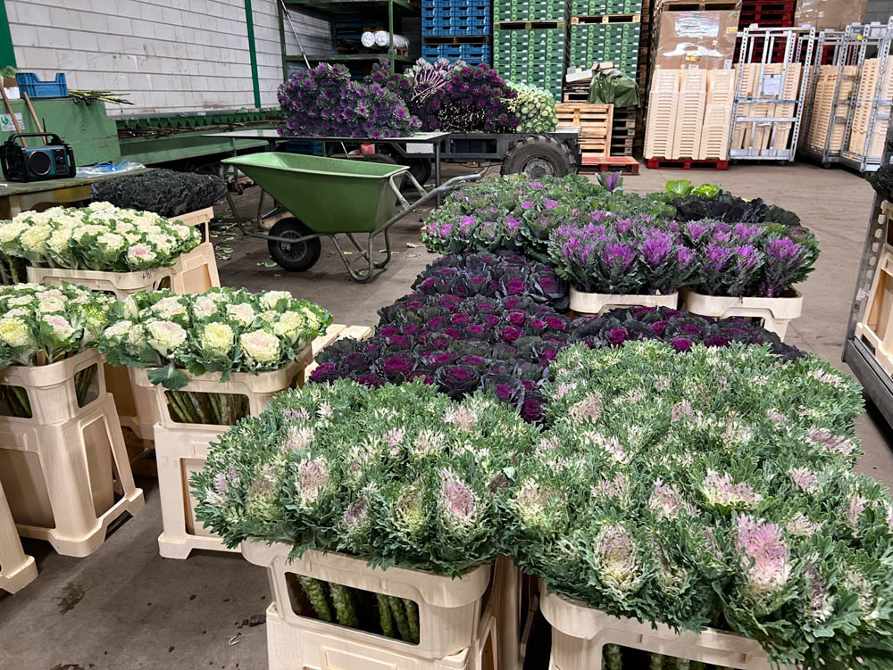 Brassica is available, depending on the weather, from September to the end of November. Brassica is available in various inspiring colours. From white, ivory, green,vintage pink to even red/purple they match the latest trends. The colours change as it gets colder, so each variety keeps changing colour until the end of the season. Frank doesn't have a favourite himself, he likes a bouquet of different varieties together best.